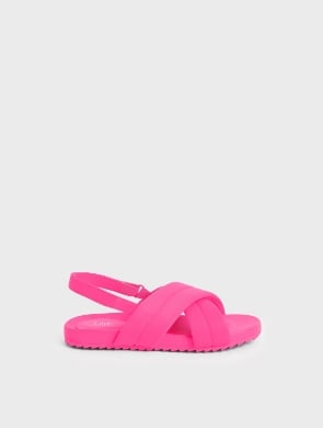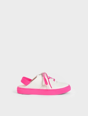 Slingback shoes are kid-friendly because it is easy for little hands to put them on and take them off. Our two-tone lace-up sneaker mules in fuchsia put a fantastic finishing touch on a colourblocked track suit, while the charming jacquard back-strap sandals inject a dose of girlishness into a cute and casual weekend look.