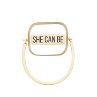 Our exclusive She Can Be collection consists of a necklace and a ring that are available in three colours: gold, silver and rose gold. Each piece features a rectangular acrylic pendant that has been inscribed with the empowering words “She Can Be” and will make a meaningful statement when you put it on.